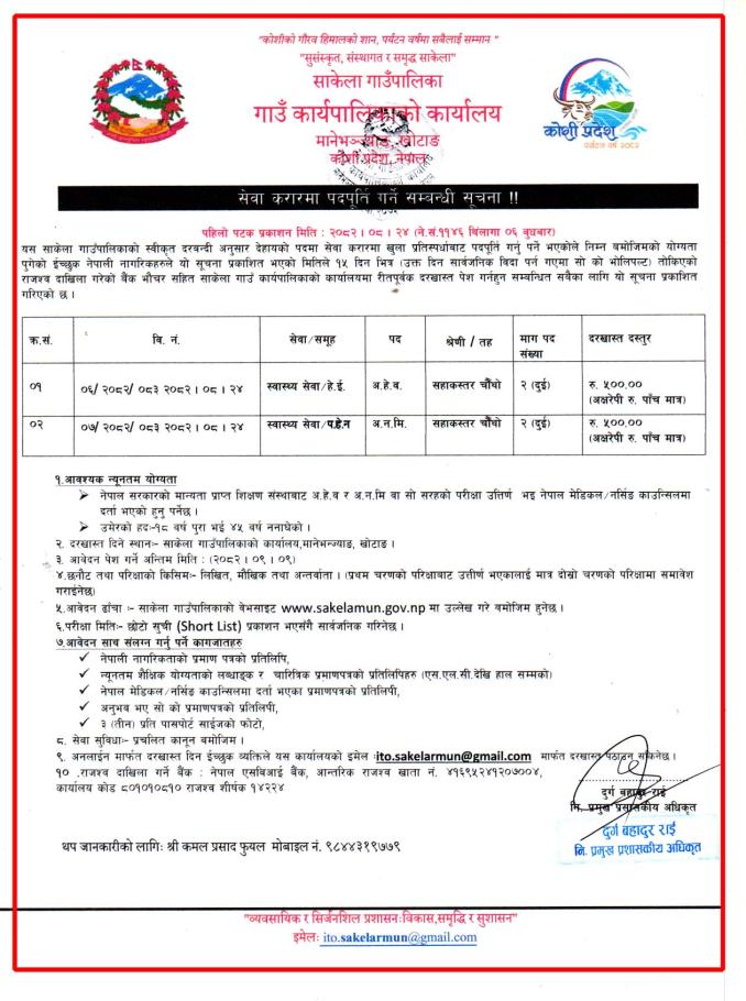 सेवा करारमा अहेव र अनमी पदपूर्ती गर्ने सम्बन्धी जरुरी सूचना
